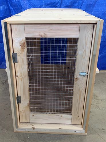 Do you need a custom wooden kennel made for your dog to travel by airplane? We can custom build an IATA approved CR82 for strong breeds, or a custom IATA approved wooden kennel for large or small breeds of pets who need a travel kennel built with specific dimensions to meet their needs to travel by air. CR82 custom built dog kennels